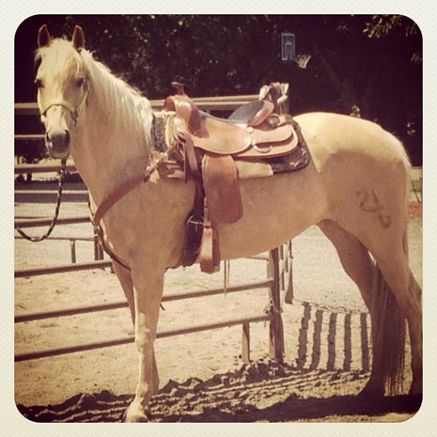 That was the name of the beautiful palomino stock horse on the screen. I wasn’t caught by the horses beauty or it’s information – I was shocked to see the striking resemblance that she had to my sisters gelding Ringo (the one I won a hero award on in high school). Obviously I had to show my entire family this twin-like horse.