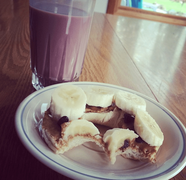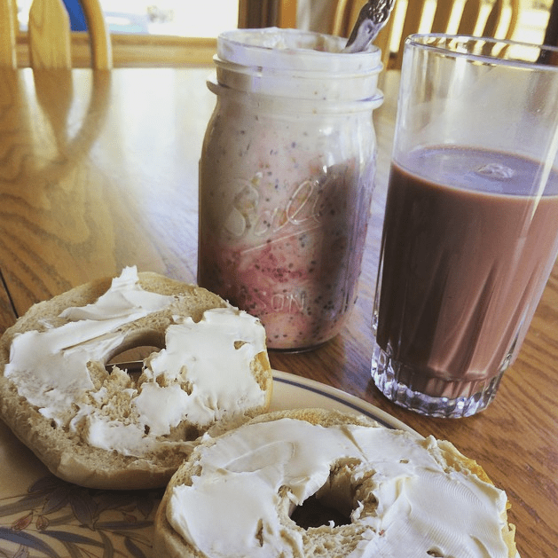 I’m always pretty hungry (I can eat a surprising amount for a 140 pound URL), so I will usually make a toasted bagel with cream cheese to take with me on the run. Although I don’t advise it (for safety reasons), I’m pretty good at warning up horses while munching on a bagel! (Insert “yikes” face here!)