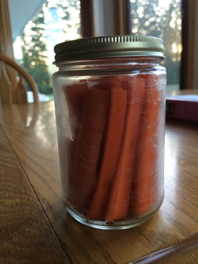 • 5 medium to large carrots; purchase extra to slice for snacks