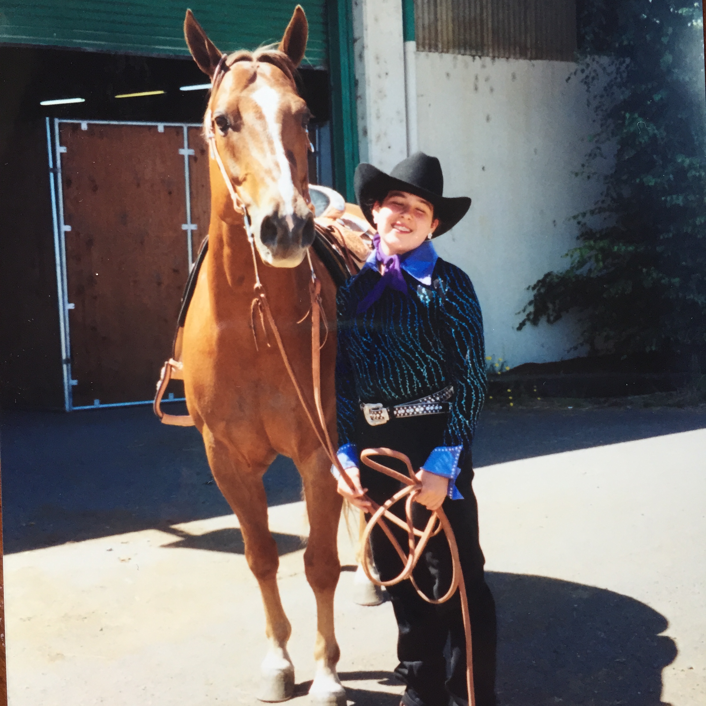 Megan & Skip“I used Skip as my main mount through 4H, all the way until my very last year. We grew up together, were inseparably, and essentially became one anytime I was on her back (just ask anyone who’s seen us on a gaming pattern). And although I was already a hellacious little thing when I got on a horse, Skip taught me many of the finer techniques to riding besides just getting on and going. Because of how I learned to do things with Skip, I was able to take both the performance and gaming aspects of my riding and apply it to my other two horses and make them awesome too!” – Megan S.