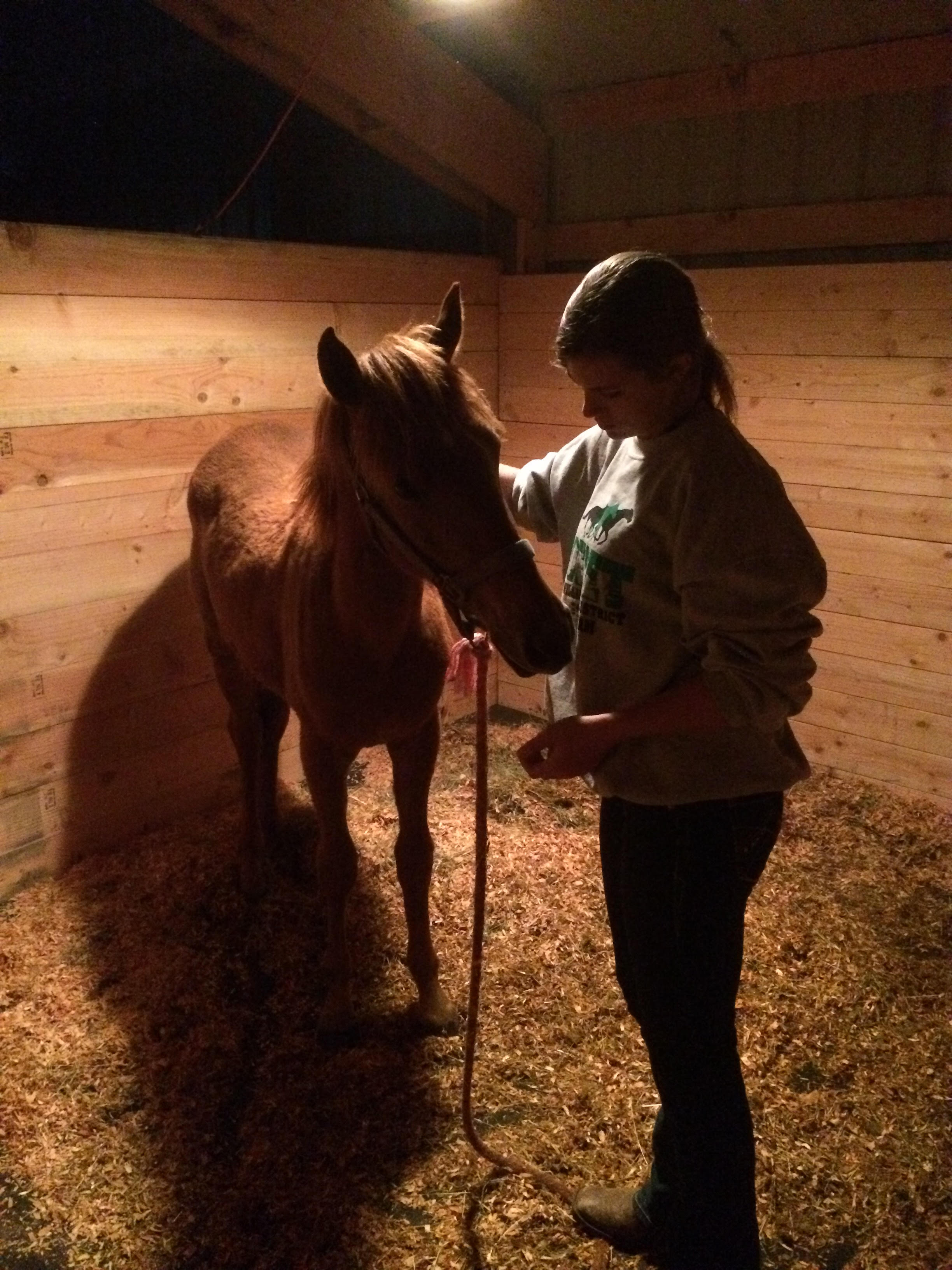 Three months ago, I was sitting on the ground in a stall of a horse I had only just met, crying hysterically and feeling like a complete failure. It was day 5 and she huddled in the corner, quivering and terrified at my presence. I had no idea what to do, I had never been in a situation where I couldn’t even get close to a horse before. We were just two terrified, young animals staring blankly at each other, completely clueless and scared. That night, after my last tear hit the floor, I called my best friend, who was the 2014 In-hand Champion. I asked her what to do and explained how I felt completely lost. She reminded me that she also hadn’t touched her horse, Brandy, for a long time after pick up day. She reminded me how I had to think about these 98 days day by day, where as I had been thinking “how the heck am I ever going to get this horse to do a perfect showmanship pattern or to bow on command?” After I hung up the phone, I took a deep breath, threw my BIG picture out the door (and slammed it closed behind it!), and headed back down to the barn the next night.